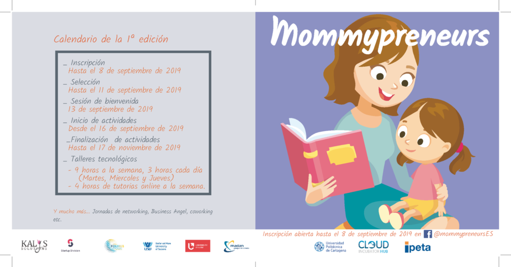 Ampliado el plazo de inscripción hasta el 15 de septiembre de 2019 para inscribirte en los talleres tecnológicos de Mommypreneur, con la calidad y experiencia que te ofrece Cloud Incubator HUB y la UPCT Universidad Politécnica de Cartagena.